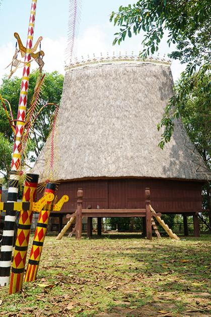 Cây nêu là hình ảnh quen thuộc ở phía trước mỗi nhà rông. Ảnh: Phong Vinh.