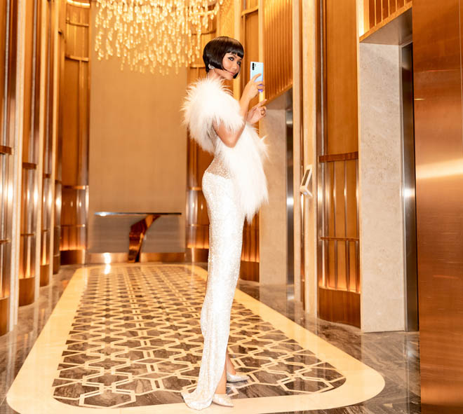 H'Hen Niê đã như lột xác. Cô ăn vận như biểu tượng sắc đẹp Mỹ với tóc bob ngắn của biểu tượng sắc đẹp những năm 1920. Quá lạ và hấp dẫn.