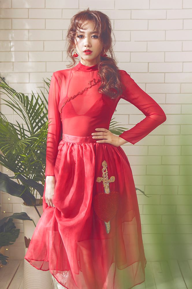 Lần khác, Hari Won cũng ghi điểm cao với cách phối đồ toàn màu đỏ. Stylist An Mi nhận định: "Hari Won khoe nội y rất khéo léo và tinh tế. Vì nội y đồng bộ cùng trang phục và tạo được đường nét hài hoà cùng tổng thể." Áo lót dây mảnh, không gọng giúp người mặc giữ được vẻ đẹp mong manh, nữ tính.