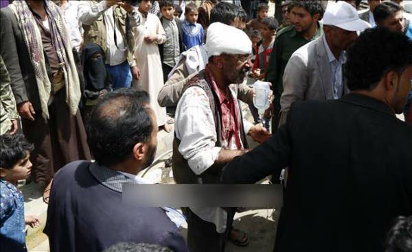 Nạn nhân bị thương tại hiện trường một vụ không kích ở Sanaa, Yemen, ngày 7/4/2019.