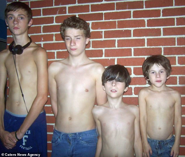 Chase hồi 15 tuổi (ngoài cùng bên trái), chụp ảnh đứng cùng 3 người con của cô Jamiee, gồm có cậu bạn thân Jaice (thứ 2 trừ trái sang), Johavun (thứ 3 từ trái sang) và Jole (ngoài cùng bên phải).