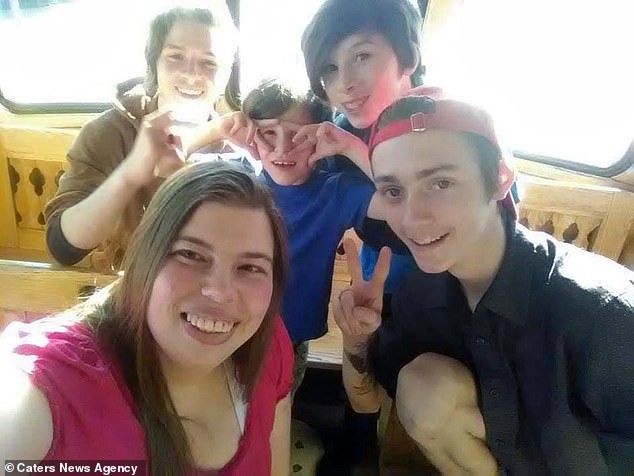 Đại gia đình trong chuyến đi chơi chung gần đây. Trong ảnh là Jamiee và Chase (hàng đầu), rồi đến phía cuối từ trái sang phải là Jaice (16 tuổi), Jole (9 tuổi) và Johnavun (13 tuổi).