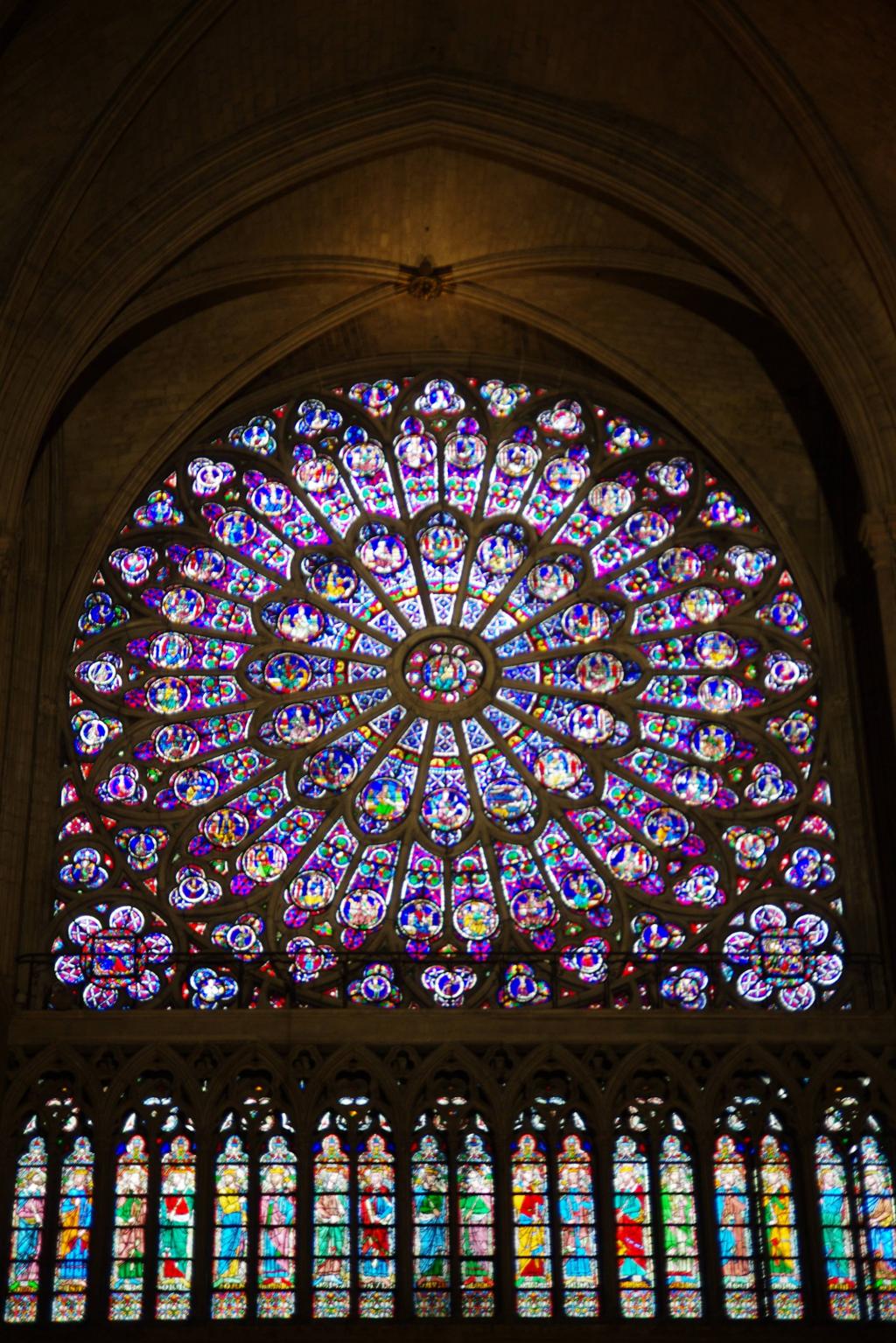 Những khung cửa này được xây dựng từ thế kỷ 13, được trang trí hướng tâm kiểu "hoa hồng" và là điểm nhấn quan trọng trong kiến trúc Gothic. Có 3 khung cửa sổ như thế trong Nhà thờ, nhưng hiện tại chưa rõ có bị tổn hại gì không sau vụ hỏa hoạn.