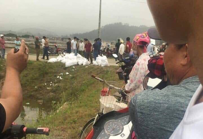 Sáng 17/4, người dân xã Quỳnh Thuận, huyện Quỳnh Lưu, Nghệ An bất ngờ khi thấy lực lượng công an đến kiểm tra và thu giữ hàng chục bao tải để lại bên vệ đường quốc lộ 48B, cạnh hồ nuôi tôm.