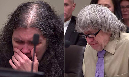 David Allen Turpin, 57 tuổi và vợ Louise Anna Turpin, 50 tuổi, hôm 19/4 bị thẩm phán tuyên án chung thân không bảo lãnh trong vòng 25 năm đầu vì tội giam cầm và tra tấn các con.