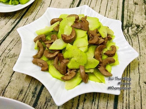 Cật heo bóc vỏ lớp màng, bổ đôi rồi lọc hết phần nhân có mùi hôi bên trong. Khía vảy rồng rồi thái cật heo thành những miếng mỏng. Ướp cật heo với chút nước mắm và hạt tiêu. Phi thơm hành khô rồi cho cật heo vào xào chín sau đó để riêng ra bát. Tiếp tục cho su su đã gọt vỏ, thái lát vào xào chín. Cho cật heo vào đảo đều là xong.