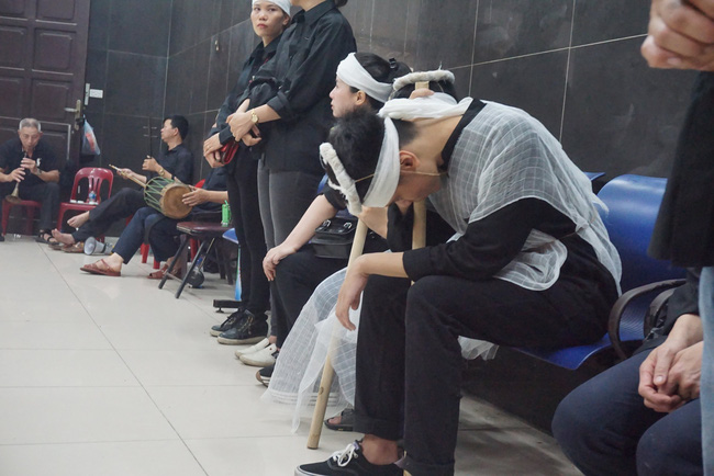 Hai người con của chị Hà nấc nghẹn trước khi lễ di quan của mẹ được diễn ra. Nhiều người thân đứng bên cạnh cũng không thể nào cầm được nước mắt.