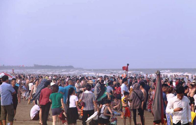 Từ đền Độc Cước đến cuối bãi tắm D, chỗ nào cũng thấy người chật cứng