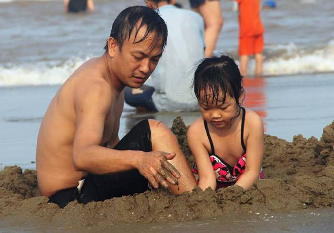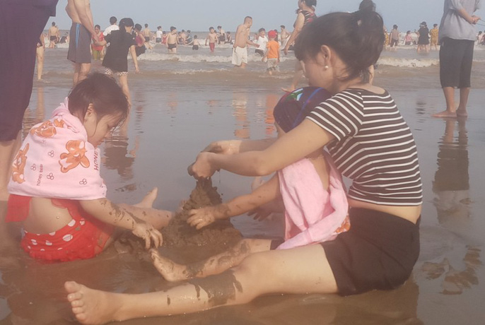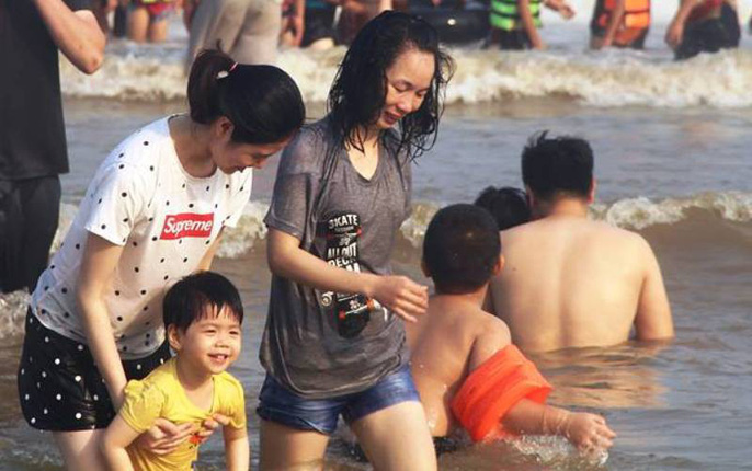 Rất nhiều gia đình đã mang theo con cái đi biển giải nhiệt sau những ngày làm việc mệt nhọc