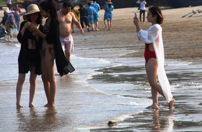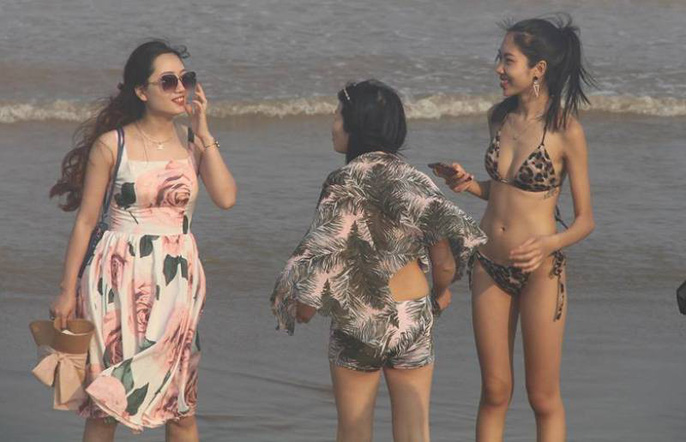 Có rất nhiều các cô gái xinh đẹp cũng kéo về Sầm Sơn tắm biển