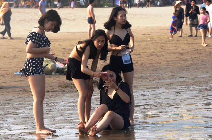Bãi biển dường như không còn một chỗ trống, người dân phải chen nhau để tắm