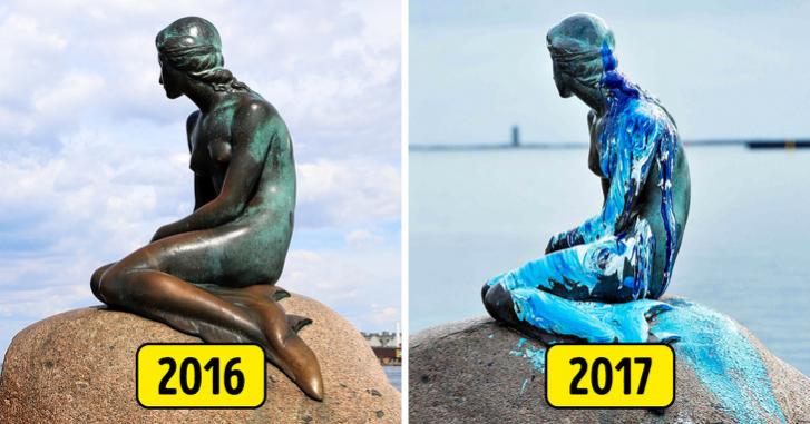 Tác phẩm điêu khắc được thực hiện bởi Edvard Eriksen vào năm 1909, nhưng nó đã bị phá hủy hoàn toàn bằng sơn, hình vẽ graffiti. Được biết những người phá hủy bức tượng này đều trong tình trạng say xỉn, buồn chán hoặc bệnh tâm thần.