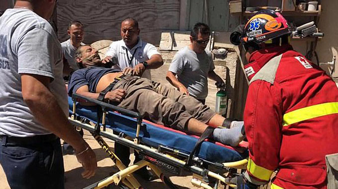 Ông Gómez được cảnh sát và các nhân viên cứu hộ cho lên xe cứu thương tới bệnh viện. Ảnh: Comumi-K Sonora.