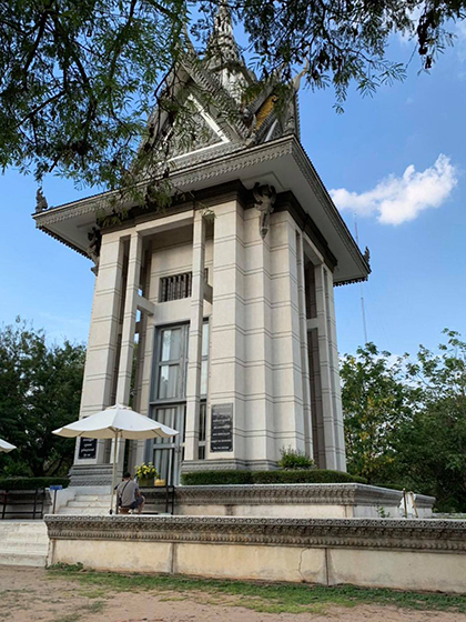 Để tưởng niệm các nạn nhân xấu số, Chính phủ Campuchia xây dựng Đài tưởng niệm ở giữa khu di tích và lưu giữ hộp sọ của các nạn nhân. Ảnh: Vân Phạm.