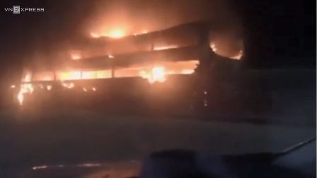 Rạng sáng 13/5, xe khách giường nằm chạy trên quốc lộ 1 từ Hà Nội vào TP HCM. Khi đến xã Suối Tre, thị xã Long Khánh (Đồng Nai), tài xế phát hiện lửa phát ra từ phần đuôi liền tấp vào lề. Nhà xe báo động cho hơn 45 hành khách thức dậy, thoát ra ngoài trước khi ngọn lửa bao trùm toàn bộ ôtô.