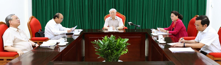 Sau khi nghe Chánh Văn phòng Trung ương Đảng Nguyễn Văn Nên thay mặt lãnh đạo 4 Văn phòng (Trung ương Đảng, Quốc hội, Chủ tịch nước, Chính phủ) báo cáo tình hình và kết quả công việc tháng 4/2019, đề xuất một số vấn đề cần quan tâm chỉ đạo trong thời gian tới, các vị lãnh đạo chủ chốt đã thảo luận và Tổng Bí thư, Chủ tịch nước kết luận.
