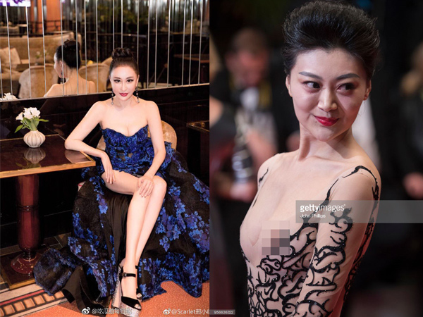 Bên cạnh những ngôi sao tầm cỡ, LHP Cannes cũng là nơi hội tụ của nhiều tên tuổi sao Hoa ngữ vô danh với những pha làm lố khoe thân để được chú ý. Nổi bật là Hoa hậu Quý bà Trung Quốc - Hình Tiểu Hồng và Triệu Hân với những chiếc đầm không thể hở hang hơn