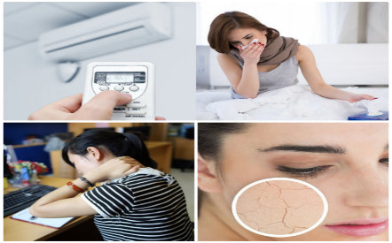 Máy điều hòa làm cho làn da khô, nặng nề nhất gây ra ngứa và bong tróc da. Trong một số trường hợp, da trở nên đỏ, phát ban. Nếu đã mắc một số căn bệnh về da như bệnh chàm, bệnh hồng ban hoặc bệnh vẩy nến, ngồi điều hòa nhiều có thể làm cho tình trạng da trở nên tồi tệ hơn, vì điều hòa không khí làm mất cân bằng độ ẩm của da.