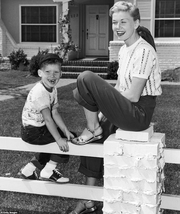 Tình yêu đích thực của Day là con trai của bà, Terry sinh năm 1942 với người chồng đầu tiên trong tấm ảnh chụp năm 1950. (Ảnh: Getty Images)