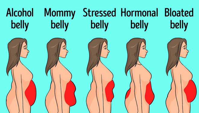 Có 5 loại béo bụng gây ra bởi những lý do khác nhau, và mỗi cách đều cần một chế độ ăn uống nhất định và tập thể dục để cải thiện. Vì vậy, điều quan trọng là xác định loại bụng của bạn và lập kế hoạch giảm cân của bạn dựa trên nguyên nhân gây ra tình trạng mỡ bụng.