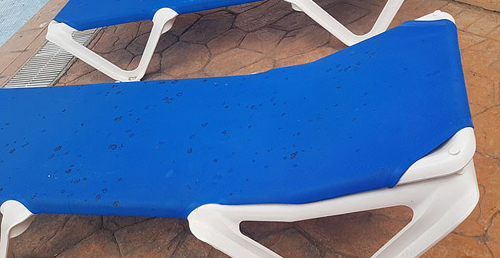 Francesca muốn tắm nắng nhưng phát hiện ghế toàn phân chim, nấm mốc. Ảnh: Kenedy News & Media.