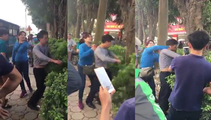 Đáp lại, người đàn ông nói: "Mày cứ bỏ tay ra". Tuy nhiên người phụ nữ không chịu: "Tao bỏ tay ra thì mày lại chạy đi, mày bóp ngực tao xong mày xin à...".