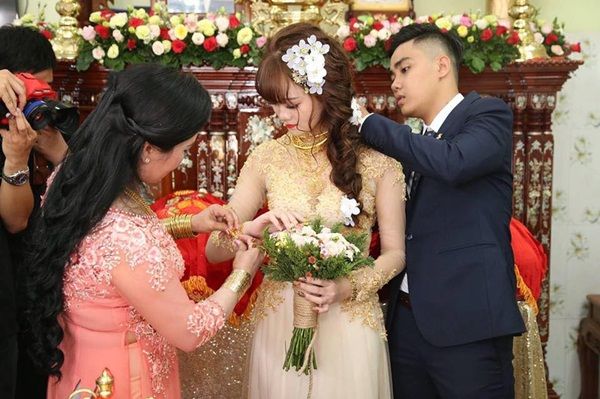 Ngoài cặp đôi này, trước đó mạng xã hội cũng từng xôn xao với hình ảnh cô dâu đeo vàng trĩu cổ ở Nam Định.