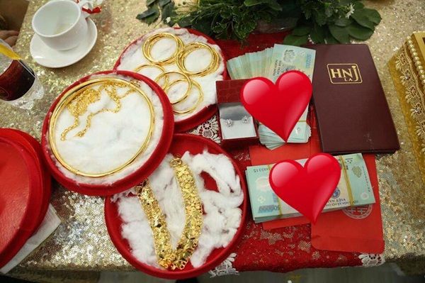 Mới đây mạng xã hội lại tiếp tục chứng kiến loạt ảnh cô dâu được tặng quà cưới khủng từ gia đình hai bên, khiến người xem không khỏi ”bàng hoàng”. Cụ thể, trên người cô dâu là đầy những vòng vàng, bông tai… còn trên bàn là những xấp tiền mặt mệnh giá lớn.