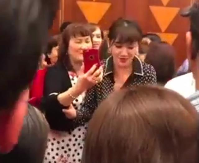 Hari Won từ chối chụp ảnh với khán giả chưa mua đĩa.