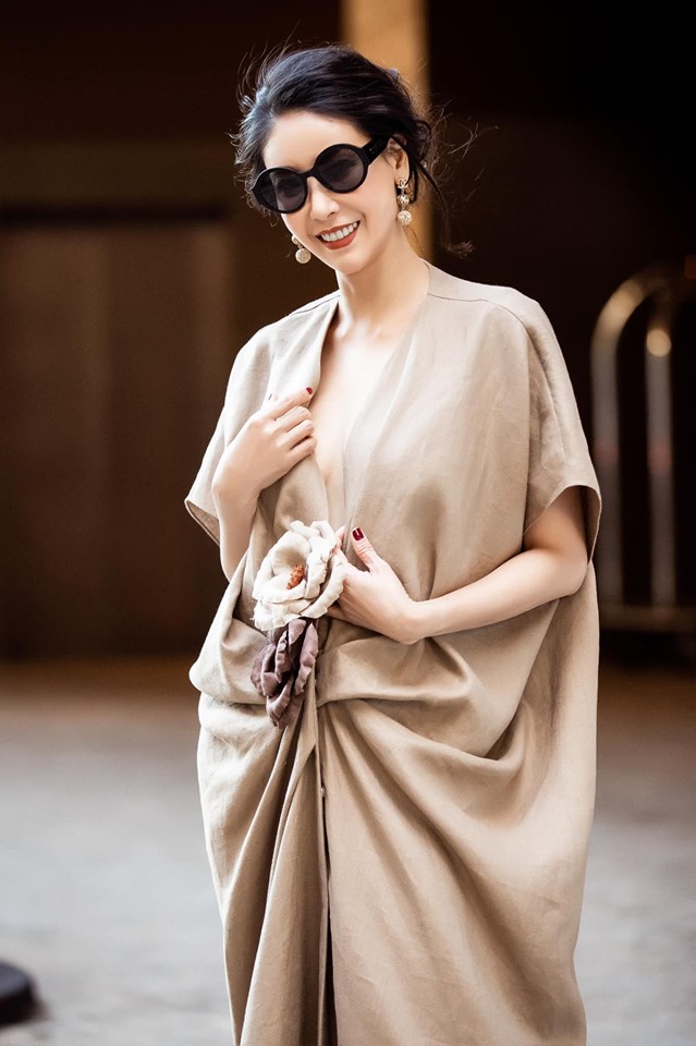 Trang phục với tông màu ngọt ngào, thanh lịch kết hợp phom dáng nữ tính, hiện đại càng khiến Hoa hậu Việt Nam 1992 trẻ đẹp hơn so với tuổi thật.