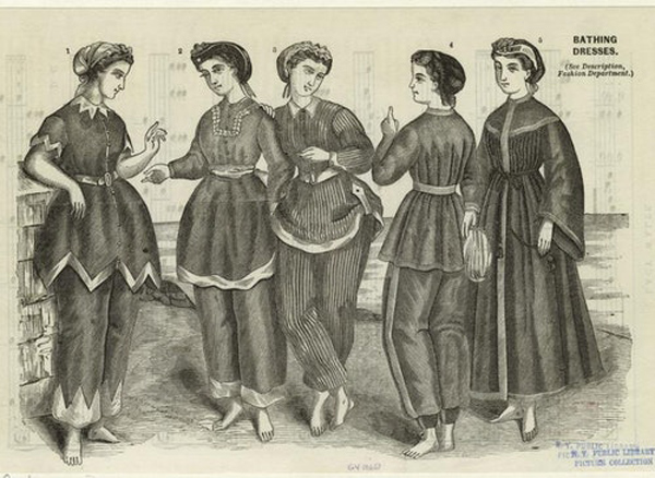 Trang phục thời kỳ này có lẽ không dành cho việc "tắm táp" khi chị em chỉ có thể "nhúng" người chứ không thể bơi lội vì quá nặng.