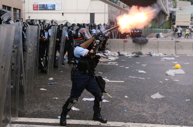 Cảnh sát Hong Kong đối phó với người biểu tình ngày 12/6. (Ảnh: Reuters)