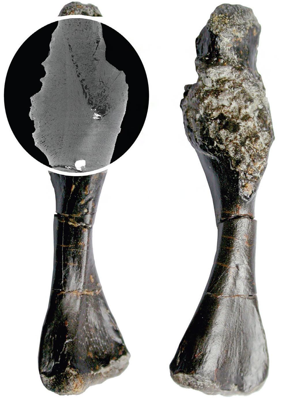 Để t́m hiểu bằng cách nào răng được gắn vào hộp sọ, các nhà nghiên cứu đă cắt ra một hàm thành những mảnh nhỏ và đã nhìn thấy những bong bóng xương trên rễ của ngà răng của động vật cổ. Đây là những khối u mô răng lành tính.