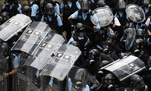 Cảnh sát Hong Kong được triển khai để trấn áp người biểu tình ngày 12/6. Ảnh: Reuters.