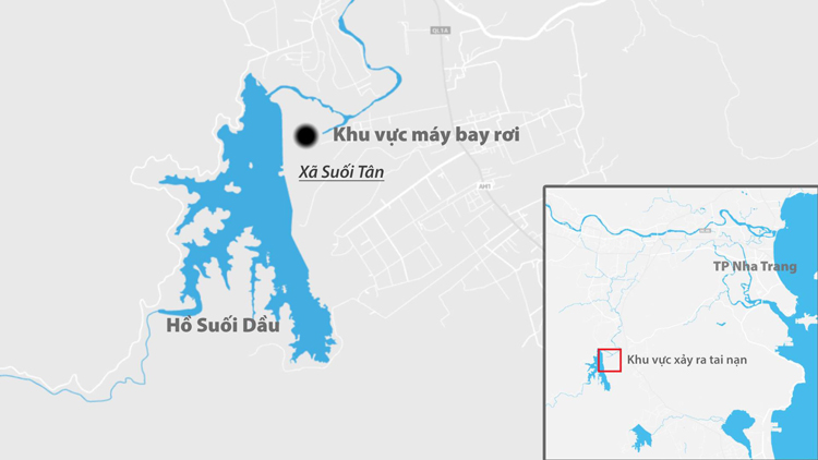 Vị trí máy bay quân sự rơi trên rẫy trồng xoài của người dân, gần hồ nước Suối Dầu, xa khu dân cư. "Máy bay bị cháy một nửa. Hai phi công đã tử vong", ông Nguyễn Ngọc Khuê, Chủ tịch UBND xã Suối Tân (huyện Cam Lâm, Khánh Hòa) cho biết.