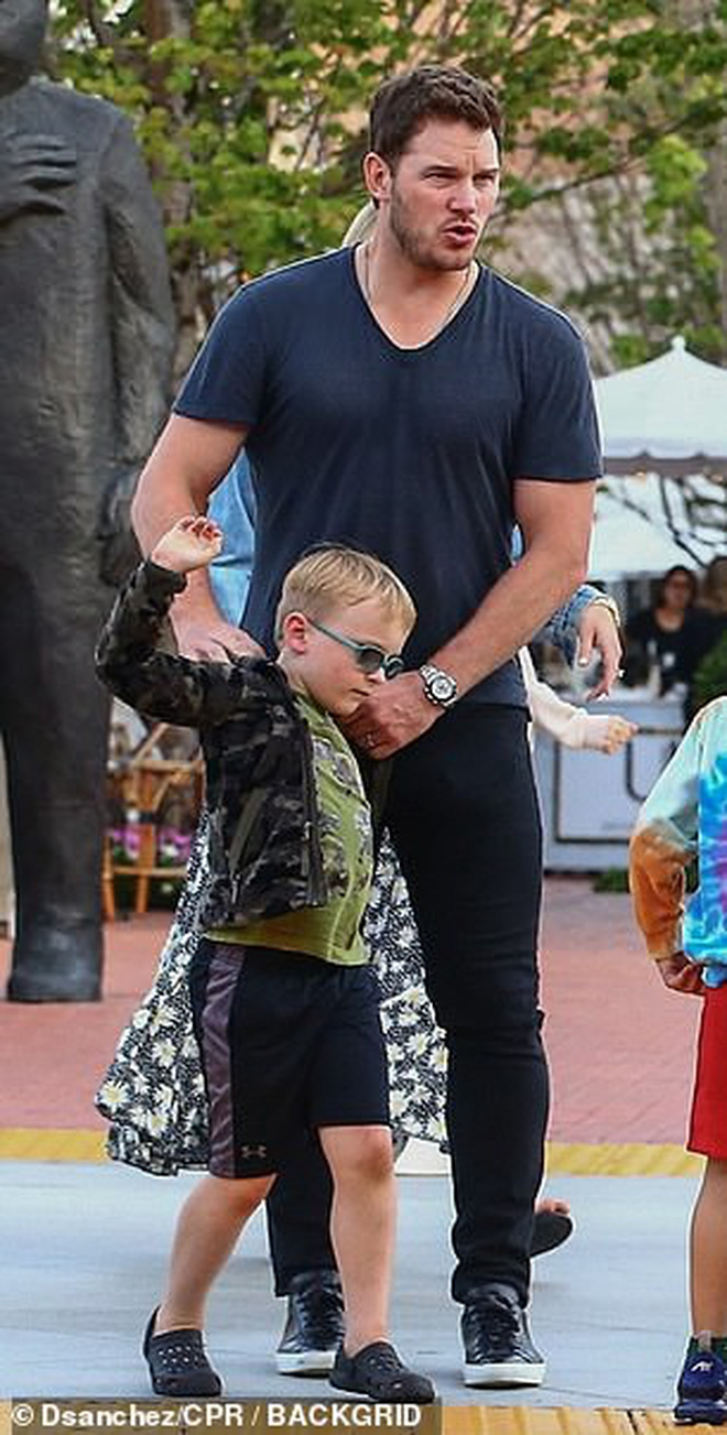Khi Chris Pratt chơi đùa cùng con trai thì Katherine lặn mất tăm