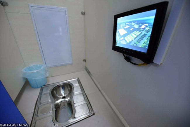 Nhà vệ sinh công cộng còn có cả TV để thư giãn