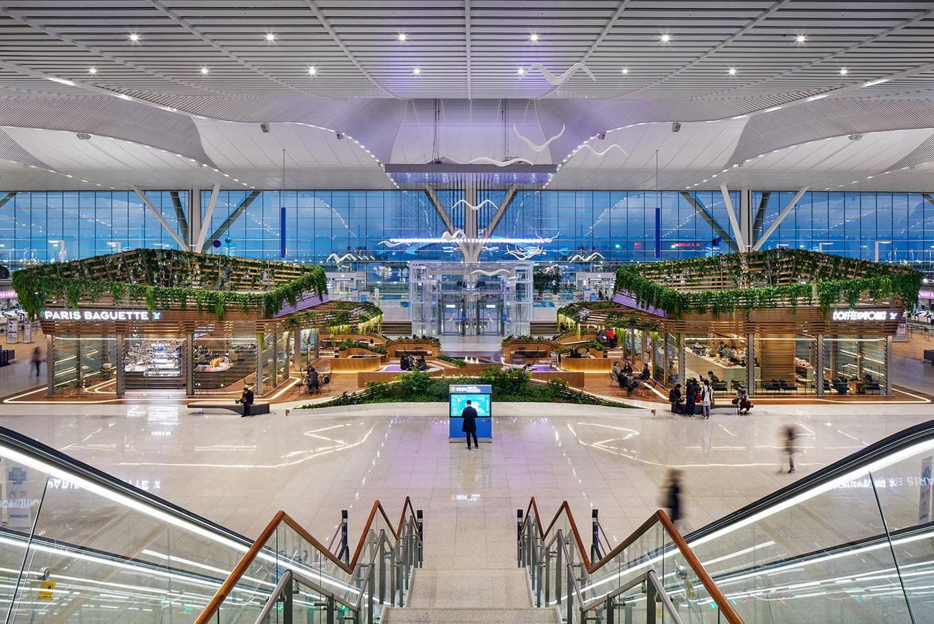 Vị trí của sân bay Incheon (Hàn Quốc) giảm một hạng so với năm trước. Sân bay đi vào hoạt động năm 2001, nằm trên một hòn đảo gần thủ đô Seoul và phục vụ 68,4 triệu lượt khách mỗi năm. Hành khách ưa thích Incheon bởi có nhiều lựa chọn mua sắm, ăn uống, các buổi trình diễn văn hóa. Bên trong khuôn viên sân bay còn một bảo tàng triển lãm văn hóa Hàn Quốc. Ảnh: UNStudio.