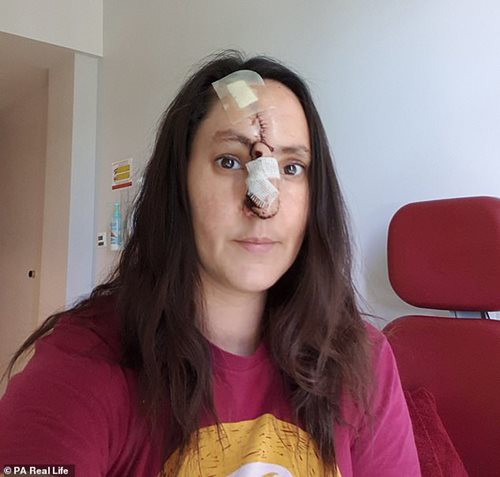 Ca phẫu thuật thứ hai liên quan đến việc tái tạo lại phần mũi đã cắt bằng cách lấy vạt da từ chân tóc của cô.