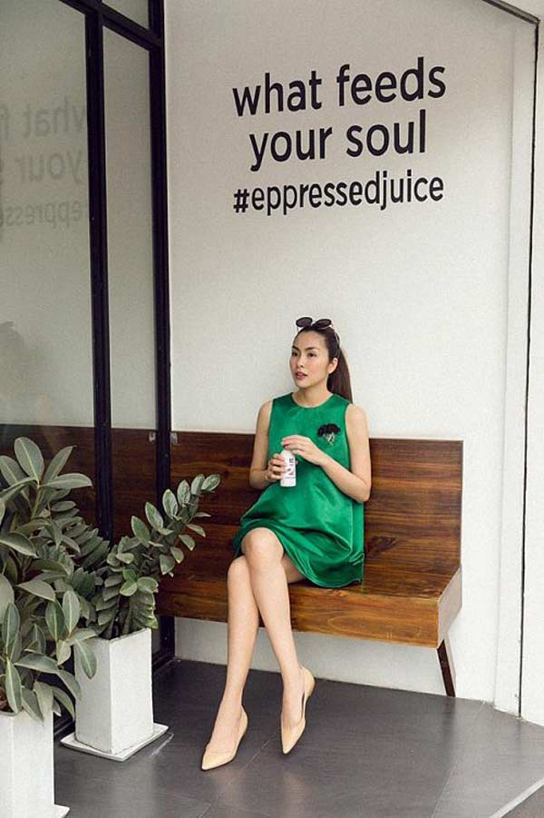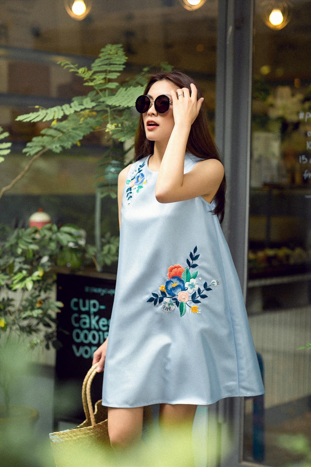 Tăng Thanh Hà cũng đặc biệt yêu thích những mẫu váy đơn sắc, thoạt trông có vẻ giản dị nhưng có một điểm nhấn tinh tế nào đó. Đây có thể cho là một trong những đặc trưng trong phong cách thời trang của Hà Tăng.