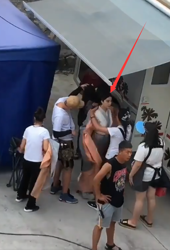Phạm Băng Băng được nhân viên đoàn phim hỗ trợ thay trang phục trên phim trường.