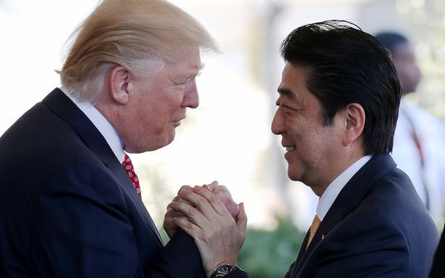Tổng thống Donald Trump và Thủ tướng Abe Shinzo gặp nhau tại Nhà Trắng (Ảnh: Getty)