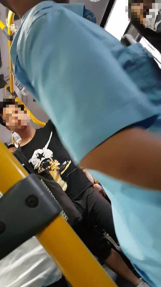 Thanh niên này đứng ngay sau ghế ngồi của 2 cô gái và có hành vi “tự sướng”. Phát hiện sự việc, một số người ngồi sau đã la lớn để phụ xe, tài xế và hành khách trên xe biết.