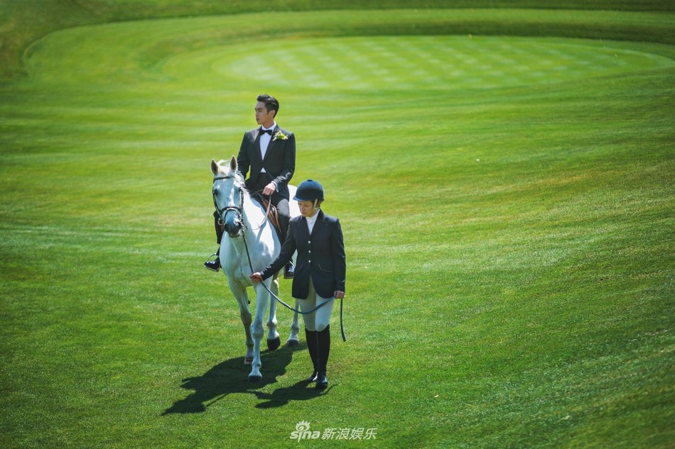 Chú rể Trương Nhược Quân cưỡi ngựa đến lễ cưới. Lễ cưới của cặp đôi tiên đồng ngọc nữ showbiz Hoa ngữ diễn ra tại một tòa lâu đài tráng lệ ở Ireland với danh sách khách mời toàn những gương mặt đình đám như vợ chồng Triệu Lệ Dĩnh - Phùng Thiệu Phong, Thẩm Mộng Thần, Tỉnh Bách Nhiên...