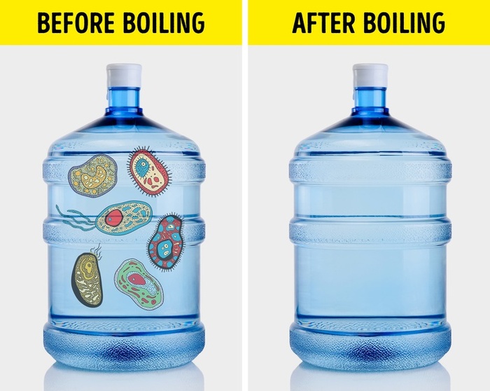 Nếu bạn ở các nguồn nước như sông, hồ hoặc ao, bạn hãy đun sôi nước trước khi uống. Mặc dù đun sôi không loại bỏ các chất gây ô nhiễm hoặc các hạt có trong nước, nhưng đun sôi có thể loại bỏ hầu hết các vi khuẩn gây ra các bệnh liên quan đến đường ruột.