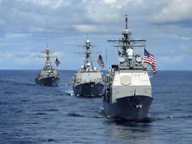 Tàu chiến của Mỹ thực hiện tự do hàng hải ở biển Đông. Ảnh: AFP