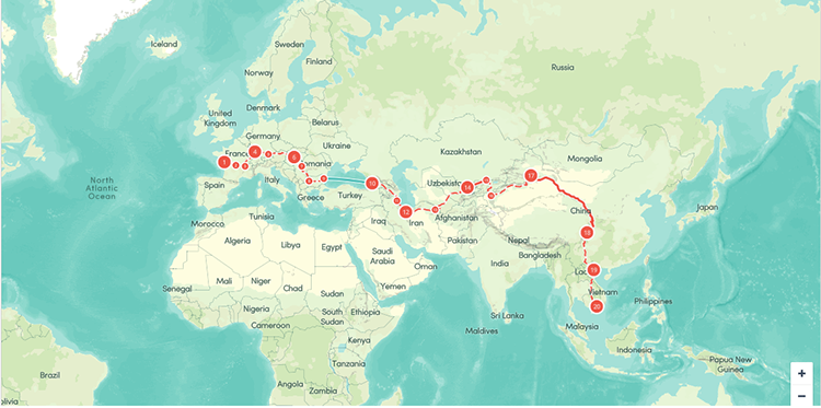 Cô dâu Việt đạp xe cùng chồng từ Pháp về Việt Nam. Thật quá khâm phục cô. Đó là Khánh Nguyên và người chồng Pháp vừa cán mốc 1/4 chặng đường từ Pháp về Việt Nam, dự kiến còn 12.000 km nữa.