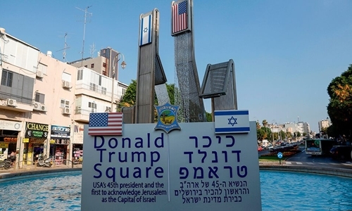 Quảng trường Donald Trump tại thành phố Petah Tikva, Israel ngày 8/7. Ảnh: AFP.