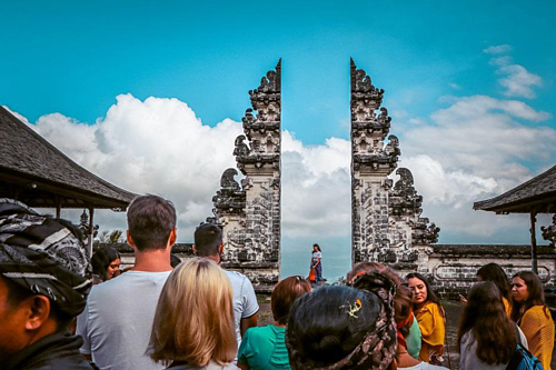 Đền Pura Lempuyang là một trong những điểm đến hút khách nhất trên đảo Bali (Indonesia) nhờ cánh cổng Candi Bentar nhìn ra núi lửa Agung. Vô số bức ảnh chụp tại nơi này cho thấy phía dưới cánh cổng là làn nước trong vắt phản chiếu trời xanh. Nhiều người ca ngợi đây là "cổng thiên đàng".
