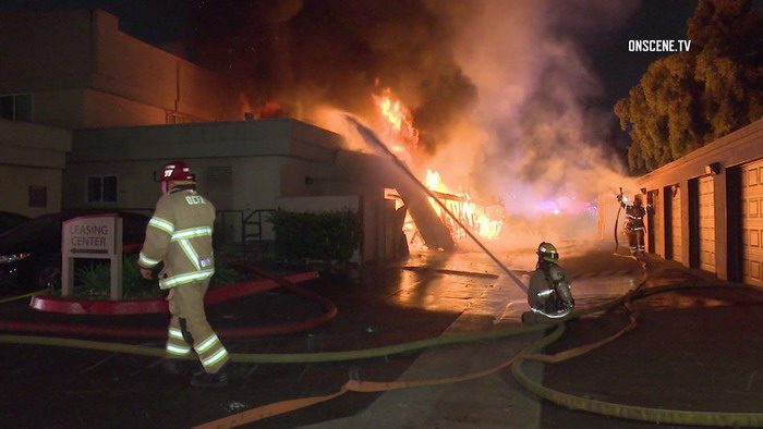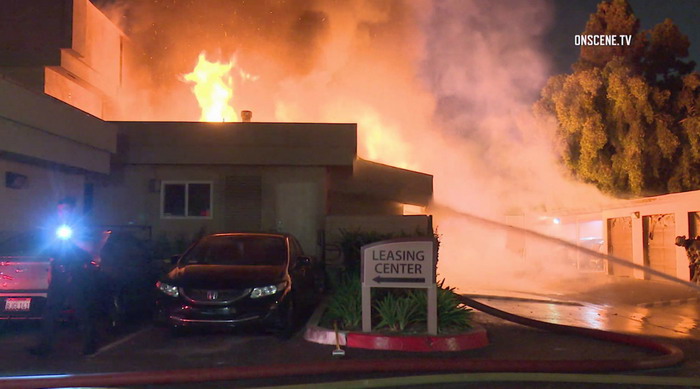 Một nhà để xe của khu chúng cư ở Fountain Valley, ngay gần trung tâm Little Saigon, bị cháy sáng sớm Thứ Bảy, 13 Tháng Bảy, làm 35 chiếc xe bị hư hại và làm cư dân 15 căn hộ phải di tản đến khách sạn tạm trú.
